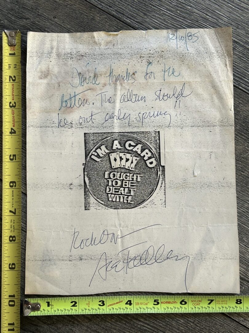 KISS ACE FREHLEY Signed Autograph w/ Note Frehley’s Comet Dec 1985 Vintage Kiss