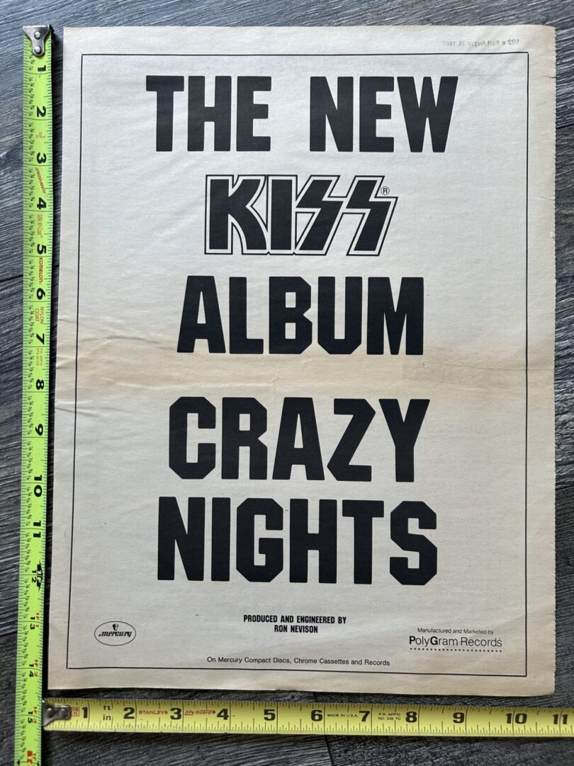 KISS Ad Advert Crazy Nights Album 11×14 Vintage Memorabilia Kiss Carr Kulick
