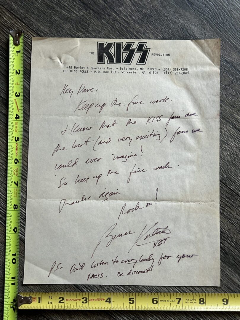 Kiss BRUCE KULICK Signed Handwritten Letter Autograph Vintage Kiss Force Fanzine Memorabilia in Very Good Plus condition from smoke free pet free home