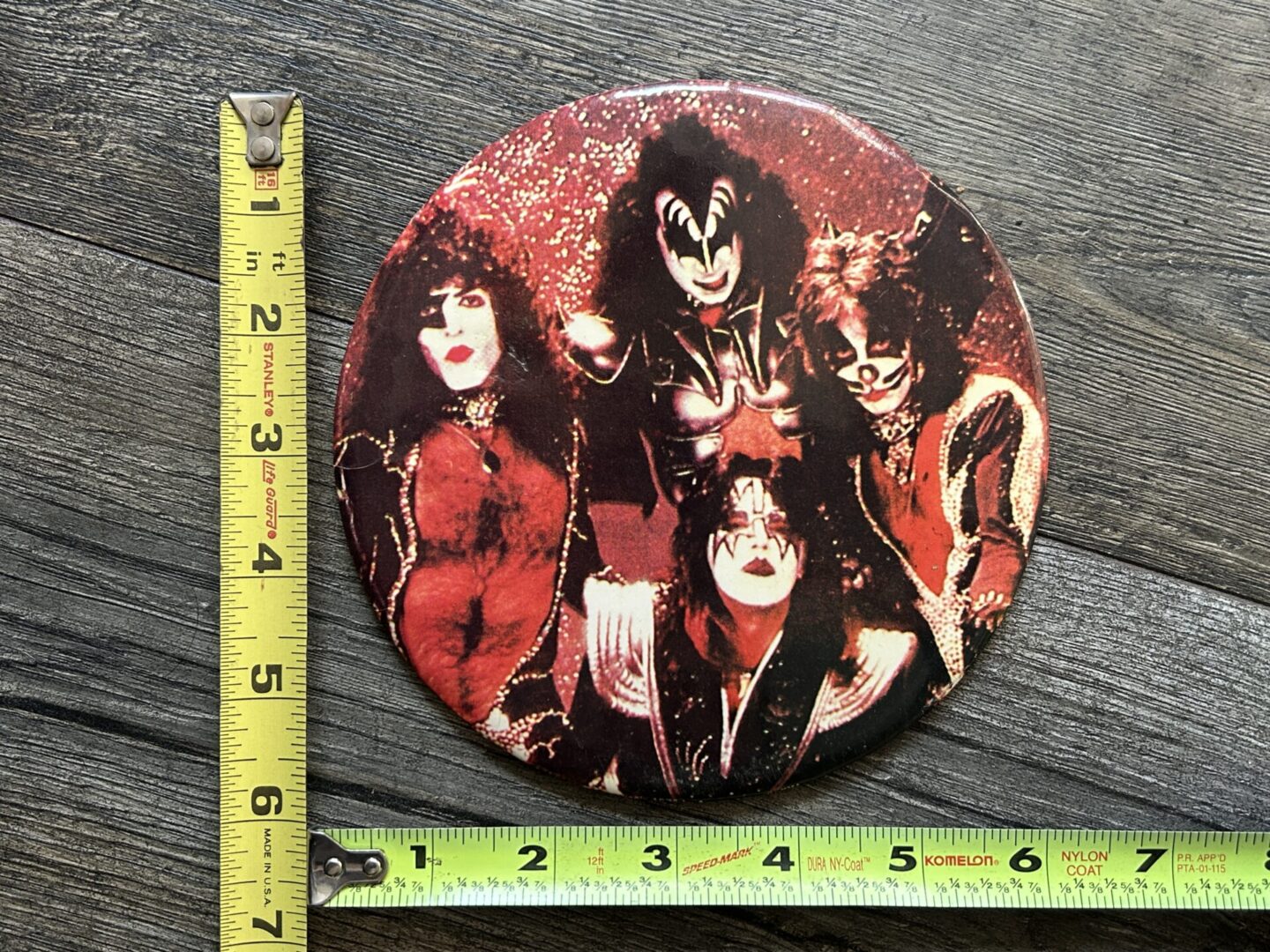 KISS Hotline Button JUMBO 6″ Correct Makeup 1976 Vintage Kiss Memorabilia Aucoin