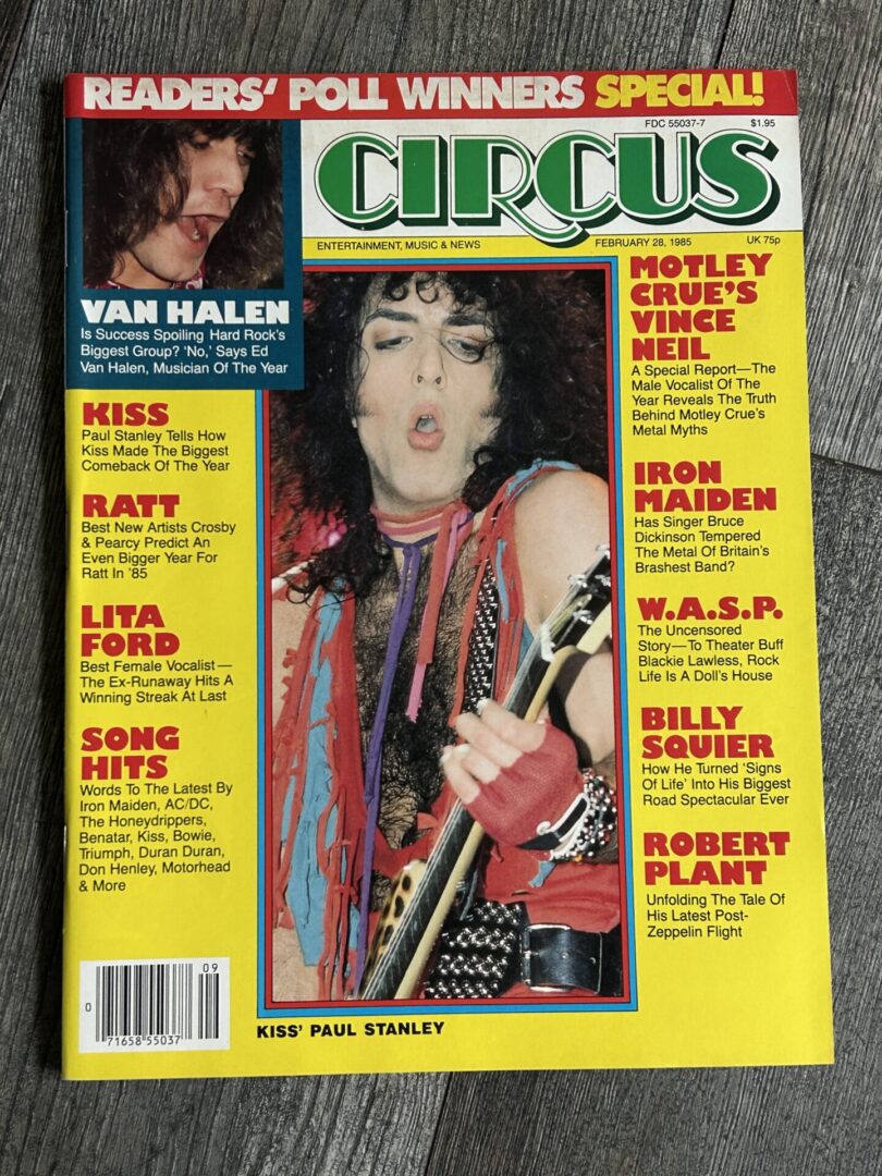 KISS Magazine Circus Feb 1985 Vintage Kiss Memorabilia Wasp Van Halen Motley