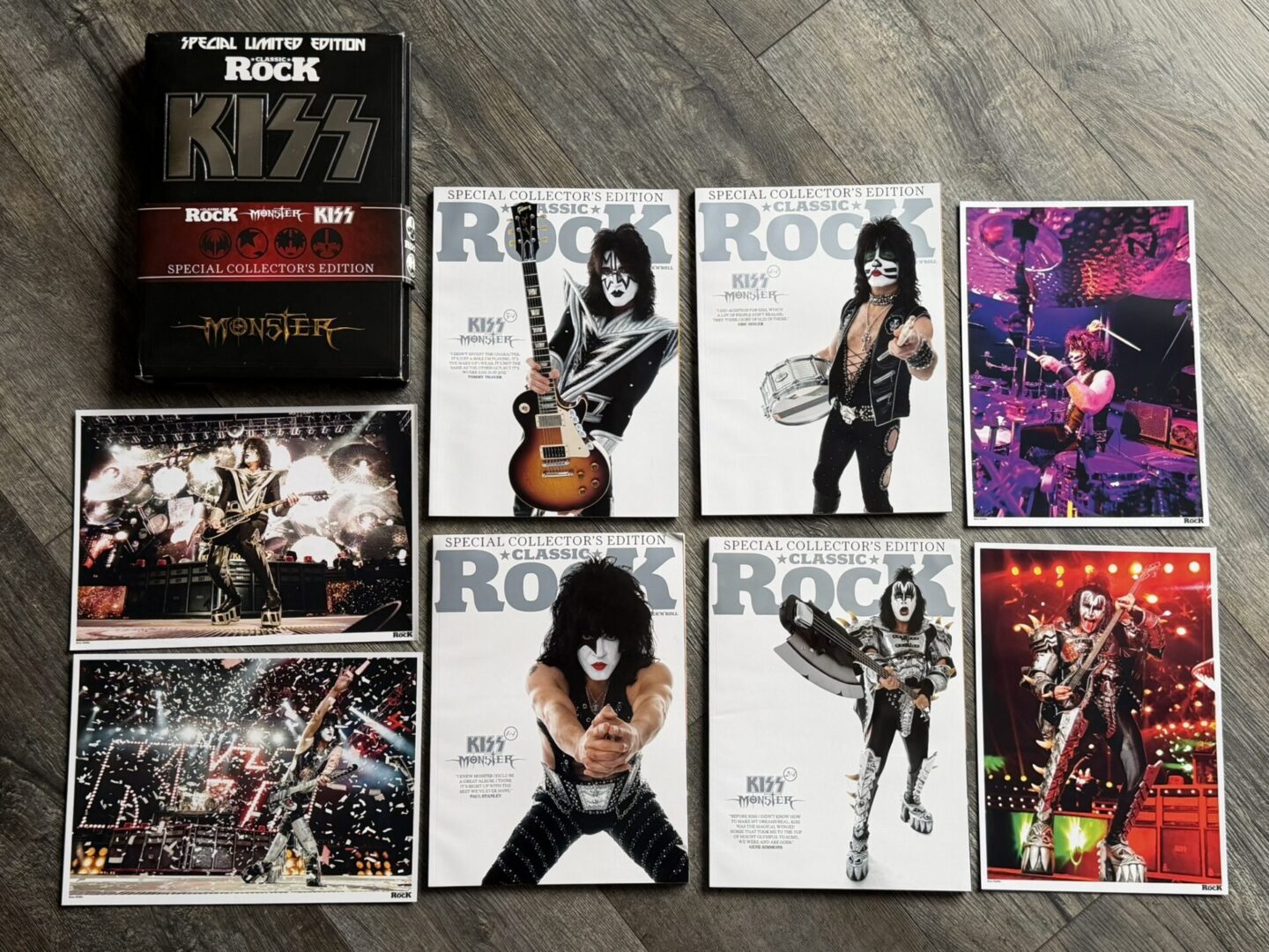 KISS Magazine Classic Rock Nov 2012 Box Set w/ Prints 8pc Set w/ Case Vintage Kiss — Eric Singer Mag fantastic condition — Tommy Thayer Mag fantastic condition — Gene Simmons Mag Excellent Plus condition — Paul Stanley Mag Excellent condition due to creases at top right corner — Prints are in fantastic condition — Case is in Excellent Minus condition from smoke free pet free home