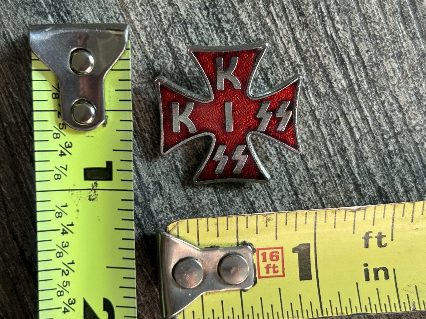 KISS Pin Badge Iron Cross Logo Silver Red 1″ Vintage Kiss Memorabilia Aucoin