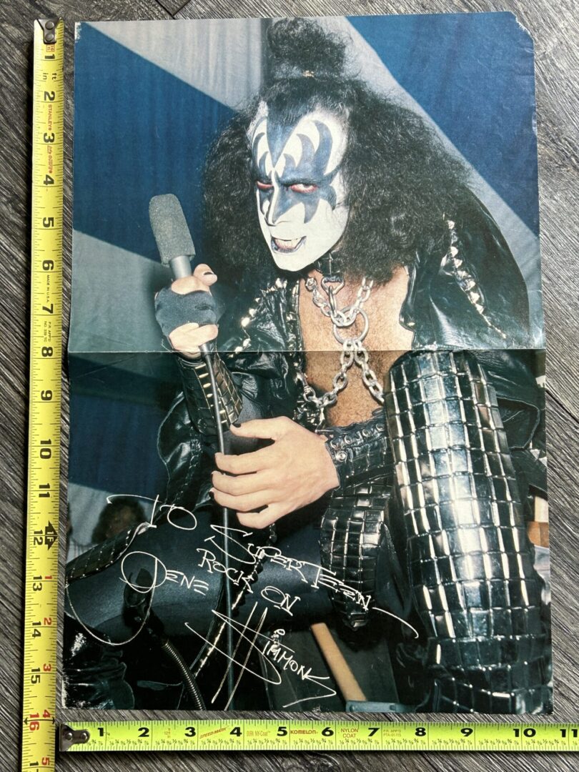 KISS Poster Centerfold GENE SIMMONS Kiss Meets The Phantom Press Conference 11×16 Vintage Kiss Memorabilia — top layer paper loss at top left and bottom left corners — missing tip of top right corner — Excellent Minus condition from smoke free pet free home
